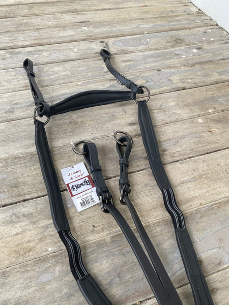 A gorgeous quality Jeremy & Lord premier breastplate with black buckles adds a smart look. Beautiful raised leather detailing Small elastic insert Detachable martingale rings